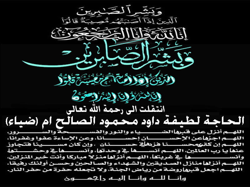 انتقلت الى رحمة الله اليوم الأربعاء 11 شعبان 1442هـ الحاجة لطيفة داود محمود الصالح والدة كل من