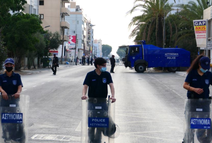 تم نصب درابزين على مسافة 20-30 مترا من مبنى وزارة العدل في نيقوسيا ، الذي كان يحرسه رجال شرطة بدروع. أغلق ضباط إنفاذ القانون الشوارع المجاورة لموقع الاحتجاج. بالإضافة إلى ذلك ، تم تركيب عربة خاصة مصفحة لقمع أعمال الشغب. وأكدت الشرطة أنه إذا تصاعد الحدث إلى أعمال شغب ، فسوف يتدخلون على الفور للحفاظ على النظام