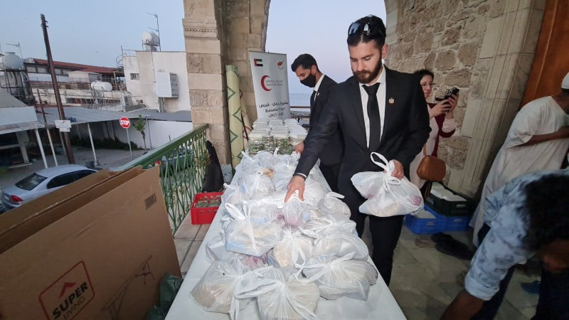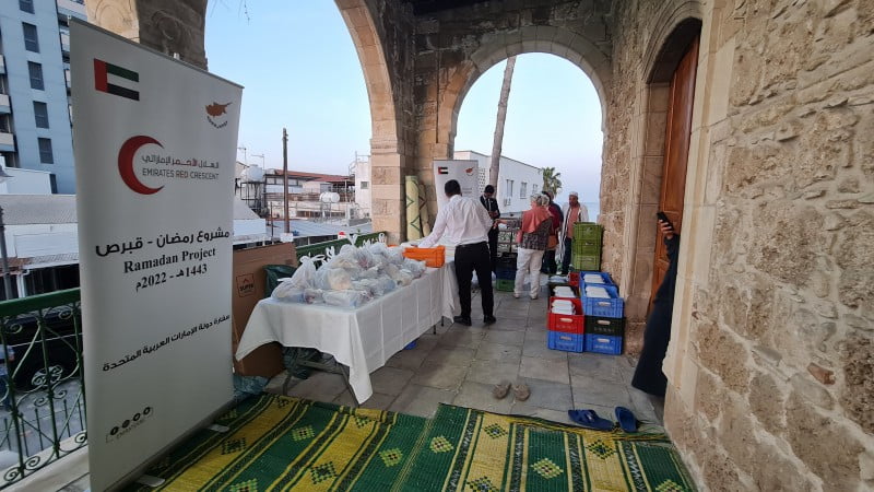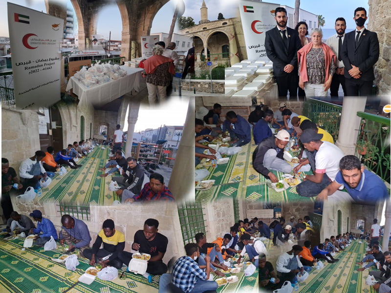 قامت سفارة دولة الامارات العربية المتحدة والهلال الأحمر الاماراتي مشروع إفطار صائم في قبرص وقدمت مأدبة إفطار في جامع لارنكا الكبير ، اليوم الثلاثاء 26 أبريل 2022، وذلك بمناسبة شهر رمضان المبارك