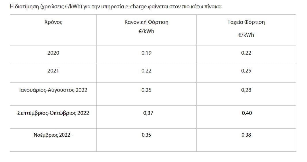 اليوم ، يتم تحصيل 25 يورو من كل مستخدم لمحطات EAC على الفاتورة الأولى ، للاتصال بخدمة الشحن الإلكتروني وإصدار بطاقة RFID ، بالإضافة إلى إيداع 30 يورو لكل بطاقة RFID ، والتي سيتم إرجاعها في حالة ذلك يقرر العميل إنهاء الاتفاقية.