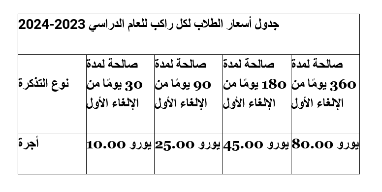 وفي سياق سياستهم الاجتماعية وتعزيز استخدام الحافلات، فقد قرروا، كما يلي: مع بداية العام الدراسي الجديد 2023-2024 تحدد رسوم الطالب على النحو التالي: