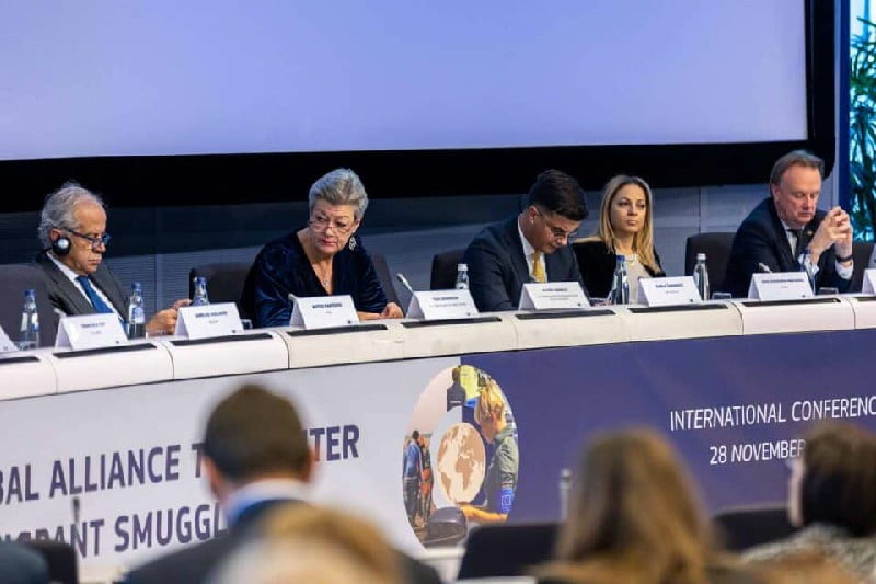 وخلال المؤتمر، أكدت رئيسة المفوضية الأوروبية أورسولا فون دير لاين أيضًا على أهمية إنشاء تحالف عالمي كآلية لإقامة تبادل رسمي للآراء حول هذه المسألة. وسلطت الضوء على الاقتراح التشريعي الجديد الذي روجت له المفوضية الأوروبية باعتباره مبادرات أساسية، مع الأخذ في الاعتبار الحاجة الملحة المتزايدة لمكافحة فعالة للجريمة عبر الوطنية الخطيرة والمنظمة المتمثلة في تهريب المهاجرين غير القانونيين.
