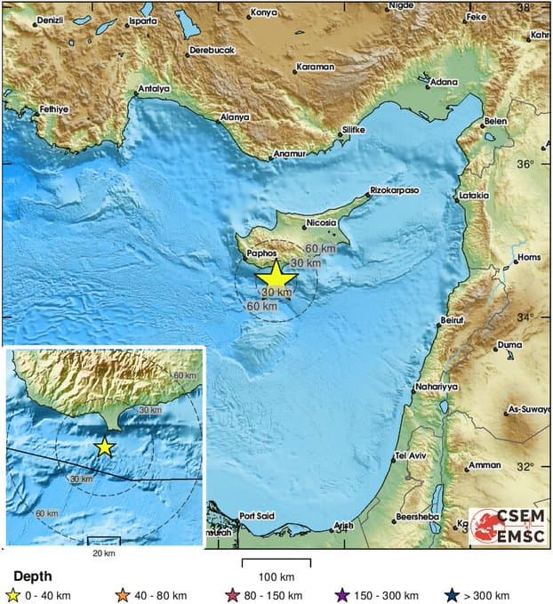 ضرب زلزال بقوة 4.0 درجة على مقياس ريختر جنوب غربي ليماسول، صباح الجمعة 12 يوليو/تموز.