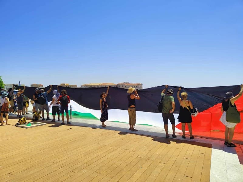 وشارك في الوقفة الاحتجاجية مواطنون وأعضاء نقابات ومنظمات محلية، رفعوا الأعلام الفلسطينية ولافتات كتب عليها: “أوقفوا الإبادة”، معبرين عن رفضهم للأحداث التي تشهدها منطقة الشرق الأوسط.