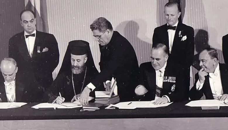 في احتفال رسمي أقيم في مجلس النواب، في منتصف ليل 15-16 أغسطس/آب 1960، أصبحت قبرص جمهورية مستقلة، بعد 82 عاماً تحت الحكم البريطاني.
