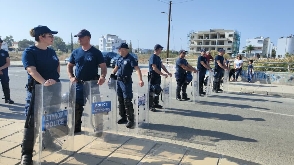 نشرت الشرطة فرقة مكافحة شغب واتخذت إجراءات صارمة في الموقع. في هذه الأثناء، قام المنظمون بإغلاق منطقة الحدث، ووضعوا أعلامًا قبرصية وأمريكية أيضًا.